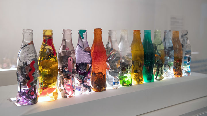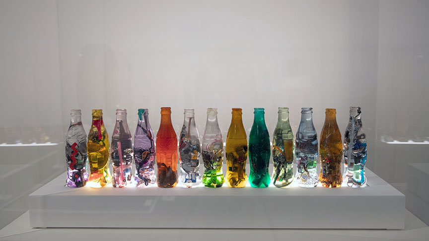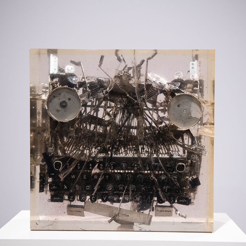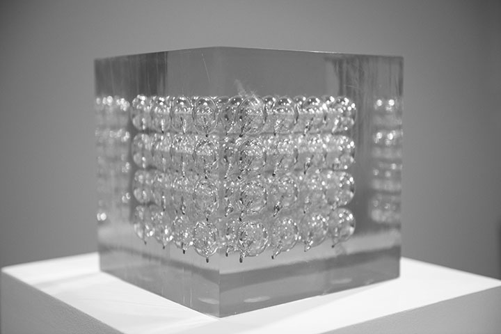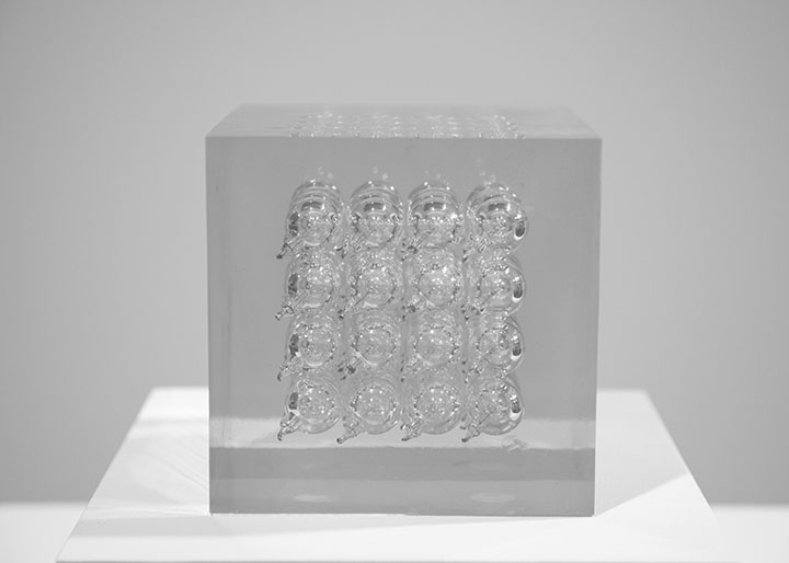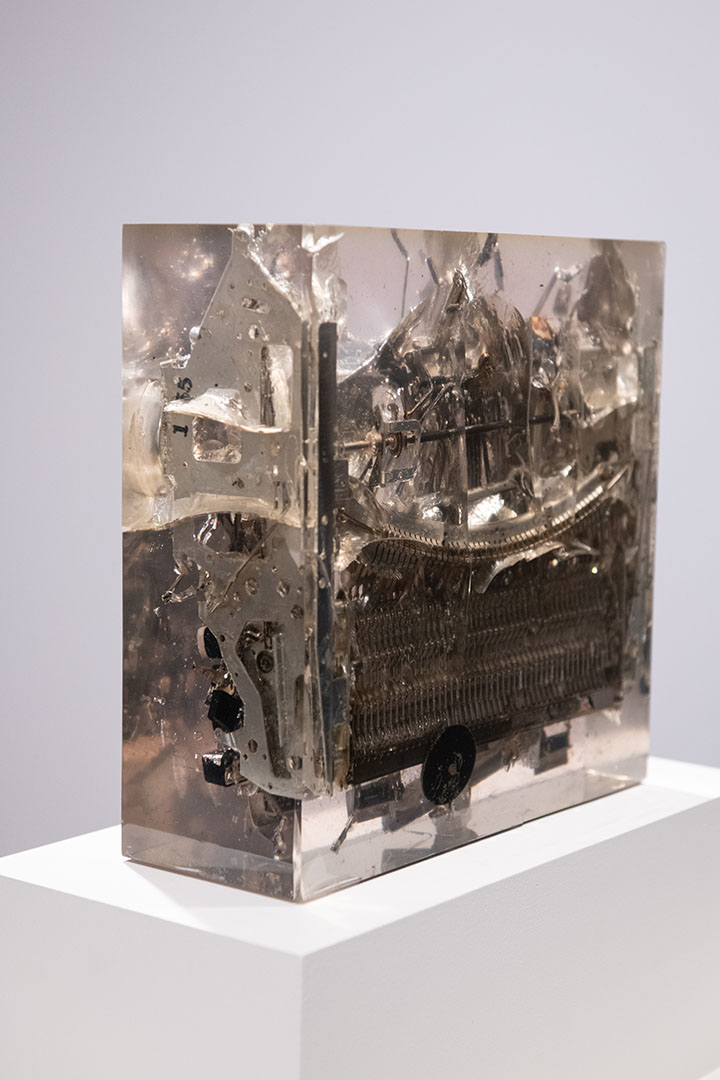 These works were done over a 40 year period of time. I have encapsulated objects found in scrap metal yards to create geometric compositions in various shapes and configurations.